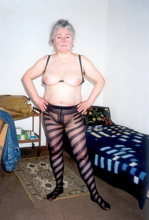 age-old granny in pantyhose poses
